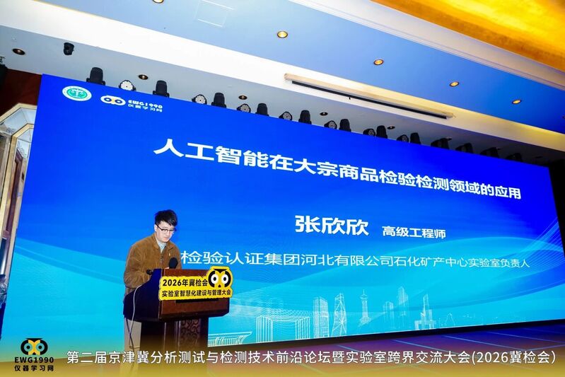 近日,第二届京津冀分析测试与检测技术前沿论坛暨实验室跨界交流大会(2026年冀检会)在石家庄隆重举办。本次大会以“汇聚创新力量,赋能京津冀地区检验检测技术发展”为主题,汇聚行业专家、企业代表与科研机构,共话检测技术创新与实验室智慧化发展。中国中检河北公司受邀参会,并在大会主论坛作人工智能在大宗商品检验检测领域应用专题报告,系统展示了中国中检在智慧检测、智能装备应用、数字化实验室建设等方面的实践应用。