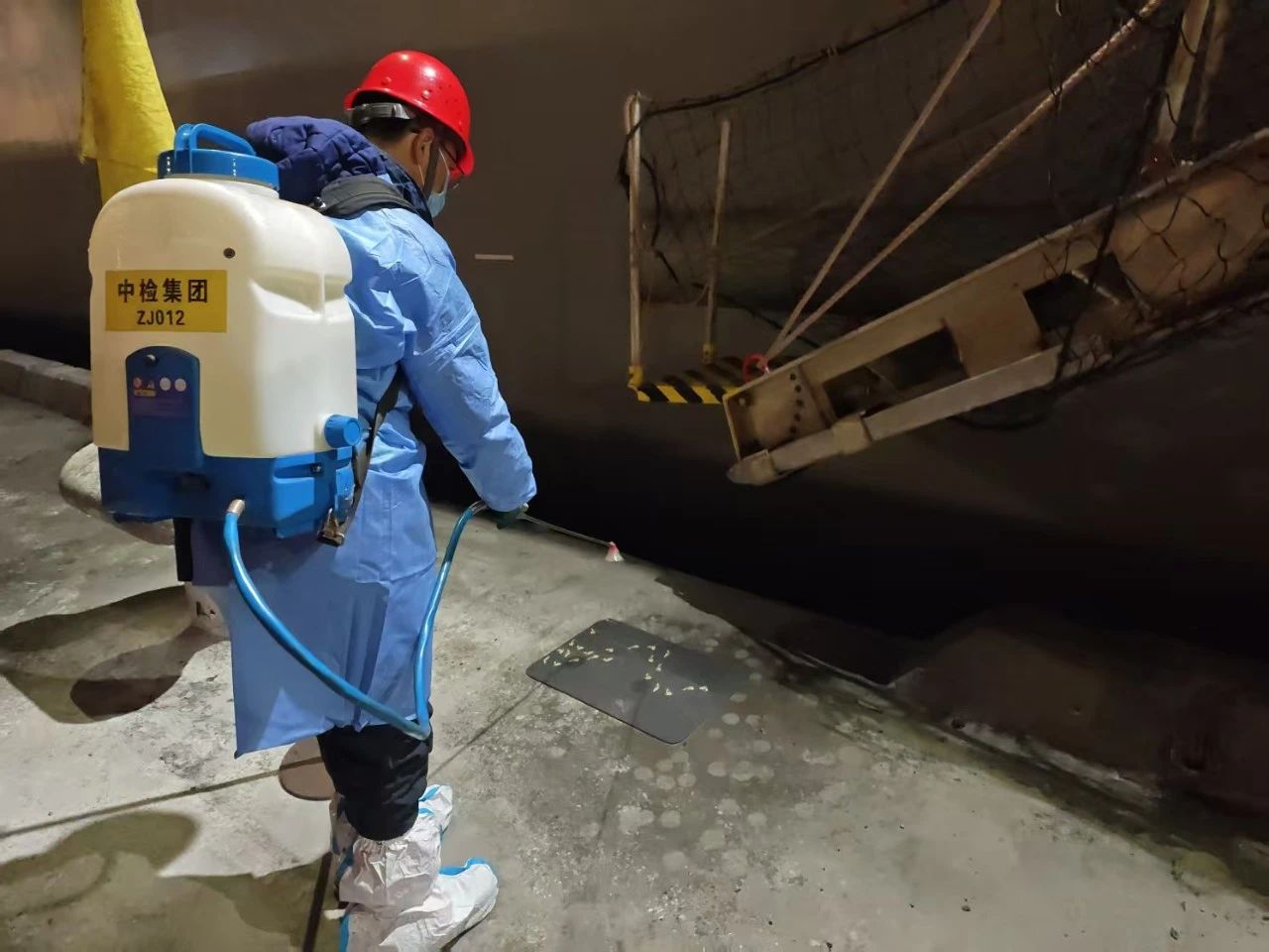 随着“加纳多快车”轮的靠泊,CCIC的消杀人员迅速到达作业场地,根据《SNT 5419-2022 进出境陆生动物隔离检疫场防疫消毒技术规范》,立即布置门式车辆消毒通道,随后,检验员背着沉甸甸的消杀设备,对装卸码头、运送车辆进行全方位消毒,有效切断了传播途径,防止动物疫病的发生和蔓延。经过26小时的连续作业,该进口牛船全流程消杀业务顺利完成。