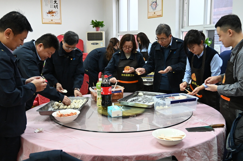 饺子是象征团圆与幸福的传统美食,承载着大家对过往的深情回忆和对未来的美好期许。文体活动结束后,全体干部职工共同包饺子,大家围坐在一起,纷纷展现出精湛手艺,享受包饺子的乐趣,比拼包饺子的技巧。一颗颗小巧玲珑、雪白饱满的饺子拉近了彼此的距离,让温暖在心间流淌,欢声笑语弥漫在活动现场。