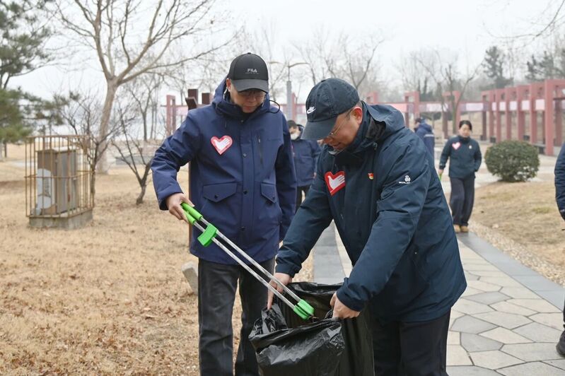 活动当天,双方人员早早来到现场,手持夹钳、垃圾袋,迅速投入环境整治。他们俯身钻进绿化带深处,夹出积存在草丛中的塑料袋、烟头和纸屑,不放过任何一个角落。大家分工协作、干劲十足,一次次弯腰捡拾,将散落的垃圾收入袋中。劳动间隙,大家一起畅谈对雷锋精神的感悟——从志愿服务的点滴温暖,到日常工作的默默坚守;从煤炭工作的严谨细致,到攻坚克难的并肩作战。有人感慨这些平凡瞬间汇聚成的感动,有人分享付出后收获的喜悦,朴实的话语间,雷锋精神在思想碰撞中愈发清晰而鲜活。这些感悟不仅融入生活的点点滴滴,也融入了彼此并肩前行的合作之中,成为对雷锋精神最生动的诠释。